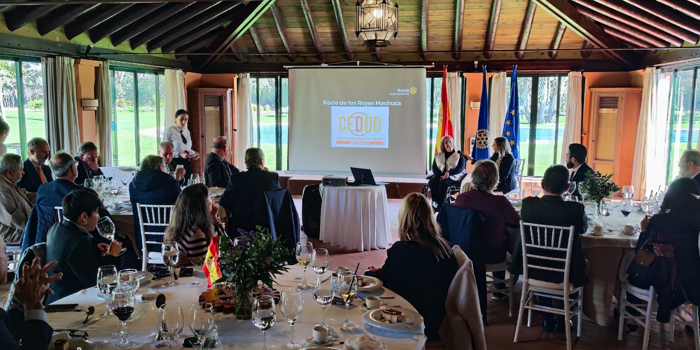 Ponencias en el Rotary Sevilla International de Rocío de los Reyes Machuca presidenta de CEDDD Andalucía y Sebastián Morales sobre ciberseguridad